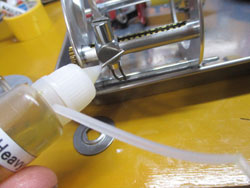 ピニオンギアとメインギアにグリスアップ。ここは硬いほうがいいので、IOSのギアグリス。コレおすすめです。