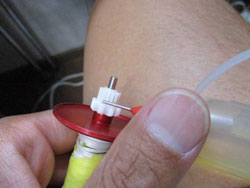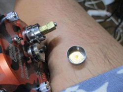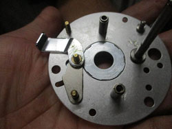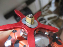 ドラグホイール。右は正ねじで回していき、少し頭が出たら、