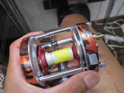 回転軽くなりましたが、パイロットガイドが減りすぎているのか、ぎくしゃくします。アッガイさん、このリール使ってないので、放置でいきま〜す!