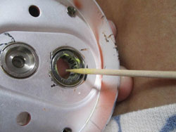 キャスコンキャップを外します。ここにシムが入っていますが、これもよくなくす部品です。