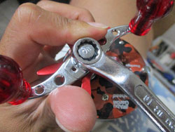 ドラグを外します。ドラグもハンドル同様、右ハンドルが右ねじ、左が逆ねじです。