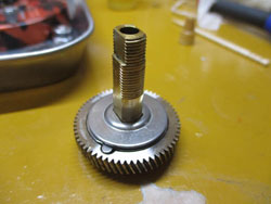 ウォームシャフト。チタンコーティングの2BBシャフト。これも新品状態では、BBにグリスベタベタなので、キレイにします。