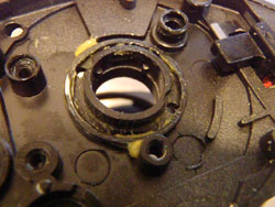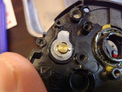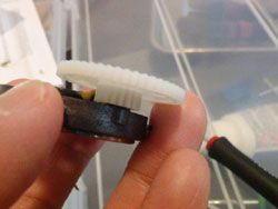 まず、ボディ側にグリスをつけ、プラのスライドワッシャーを入れる。
