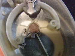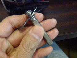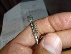 これがなかなか曲者で、エアブラシのニードルを入れて外しました。マイナスドライバじゃ無理です。