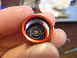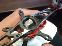 ちゃんとセットしたら、押さえたままにして、スクリュー2本でサイドカップをネジ止めします。ちなみに、ヘッジホックスタジオの赤アルマイトスクリューを使っておりますw