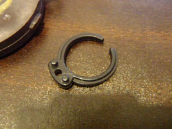 まずは、スプールピニオンから。Eリングを外せば、ギアが外れます。