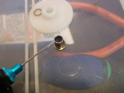 続いてコグホイールのセットです。まずはカラーにオイルを入れて、ギアにくっつけます。