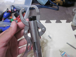 これをグリップの先端のピンに当てて、押し出します。