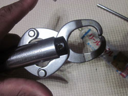 穴のセンターを確認しつつ、アッセンブリツールのシャフトを貫通させます。