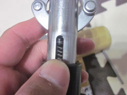 その後、シリンダーです。飛び出さないようにスプリングを取り付けて、