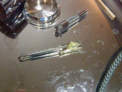 外れました。セットボルトがはまっていたねじ穴が見えます。