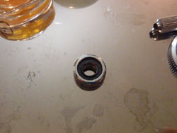 で、メクラをつけようと思った時に驚き!なんとゴムパッキンがあります!ここにゴム入れていたら、思いっきりペンキに当たるんじゃないだろうか???しかも、ワタシ、ラッカーシンナーに漬けっぱなしで、超音波洗浄したんですが・・・・。大丈夫のようです!?なんで???