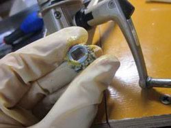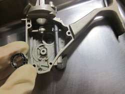 続いてグリスベタベタにしたマスターギアをセットし、ベアリングにはオイル滴下。