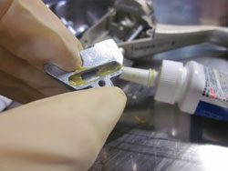 そんで、ベアリングを入れ、オイルを滴下します。純正はグリスベタ塗りでしたが、ベアリングなんで、どう考えてもオイルベターだと思います。