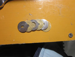 ドラグワッシャを外します。ドラグワッシャは綿みたいなヤツとステンのプレートが交互に入っており、