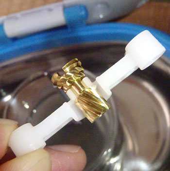 ピニオンギアこれですよ!ホントに、なーんも触ってない。アセトン超音波洗浄9分で、ピッカピカ!ギアの内壁もピッカピカです!
