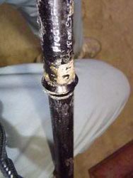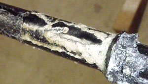 リビルドの天敵。グリップパイプのエポキシ。ブランクはスレッドの上にコーティングされているから、スレッドを解くと大抵大部分は剥げます。しかし、グリップはそうはいかない。