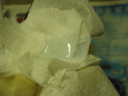 ティッシュにロックリムーバーをつけて、エポキシに塗りたくります。