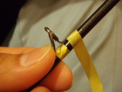 ガイドの位置は、ブランクを曲げたときに、その弓なりの頂点にセットするのが理想的。