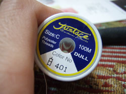 で、Cスレッドで巻きます。今までラッパーを使っていましたが、結局手巻きが一番キレイに行きます。で、今回は、抜け防止として評判の高いガイドの裏側までラッピングしてみました。