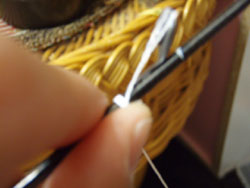 で、あとから飾り巻きのメタリックスレッドを付けて終了。