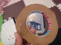 そんで、延長パイプの径が若干小さいので、かさ上げしないといけないんですが、いつものタコ糸は、タコ糸が太すぎて入らないので、コアテープでやろうかとおもったら、コアテープ、劣化してて、粘着ねちゃねちゃで使い物になりません(汗)