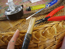 バットキャップをひっつけていたエポキシが出現。おそらく、メーカーではパイプを下に向けて作業しているんでしょうね。だから、パイプ内部の奥までエポが垂れているのです。
