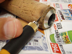 で、ココのコルクはエポを加熱する時に邪魔なので、デザインナイフで切ります。