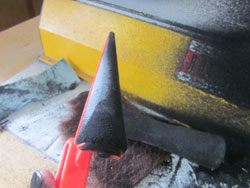 続いて、40番手を当てて削り込んでいきます。EVAはペーパーがスグに目詰まりするので、荒めのペーパーじゃないと、ハナシになりません。