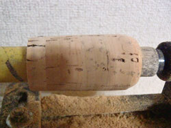 コルクはEVAに比べると、削れるスピードが速く、加工はしやすいですが、反面EVAにくらべると柔軟性がないため、グリップに組んだ際に、