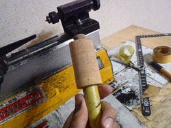 このまま回すと、芯棒はセンターが出ているのでブレないですが、コルクがブレます。