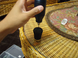 なんと、バットキャップに穴が開いておらず、しかもキャップ内径がカーボンパイプ外径とツラッツラなため、おまけに、パイプ内部はバランサーで空気の逃げ道がないため、入ってもピストンのように押し戻されてしまうのです。