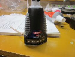 続いては、ロックタイトのピンポインタゼリー状。通常のアロンに比べると、引けが少ない接着剤ですが、