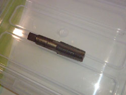 今回は、たかだか3キロのアドコンですから、おもいっきり低圧条件なので、テーパーをつけたほうがシールテープ巻く手間が省けるじゃろというわけで、テーパーをチョイスしました。というのは、実は言い訳で、塩ビみたいな薄いところにタップを立てるので、平行、テーパーあんまし関係ないんですけど、ホントウの理由は後々説明しますです。