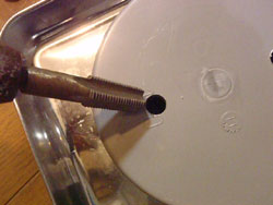 で、念のために、1/4のナットが入るかどうかをチェック。ぴったし入りますwこのタップを開ければOKというわけ。