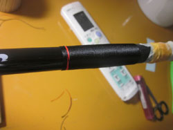 しかし、改めてロッドを見てみると、やり直した3個のガイドの上二個も微妙にずれていて、これも巻きなおすことにしました。