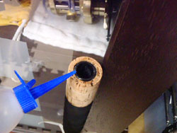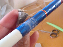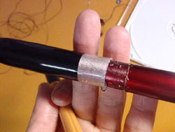 で、残るは2トンの継ぎ目の中継スレッド。糸目が消えるくらいの薄さでコーティングを入れた後、