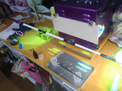 長いことかかったビルディングもようやく終わりwパイプにブランクを突っ込んだ時の達成感はなんどやってもたまらんの〜www近くで見たらアラもあるけど、結構マシなほうの出来栄えだわいwやっぱUVコーティングが薄塗りがしやすくていいんよねwwwこれからの課題はグリップ加工やの!