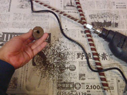 で、グリップ成形に戻りますが、これまたいつものようにマタギリーマーで内径拡張していき、