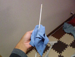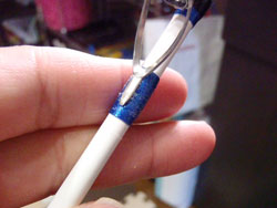 急遽、はみ出たコーティングを麺棒で修正。今回、失敗ばっかし!ナイロン平フデは、なるべく毛先が短いほうがいいです。
