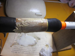 んで、完全硬化後、最後にコルク成形のクラック補修。