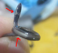 なお、ガイドリングも緩衝材としてエポキシを使用しているらしく、エポキシが熱で溶けて、さらにリングフレームが膨張するしで、高い確率でリングが外れます。