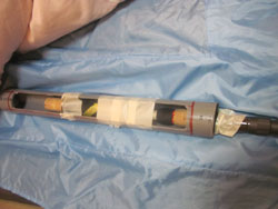 ブランク挿入口も径合わずにスカスカなんで、ここにも充填させて起きます。先割れ防止のためです。