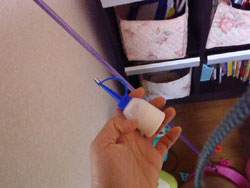 さて、次はスレッドの相性確認。練習で作った同色のパイプに色々巻いて様子を見ます。