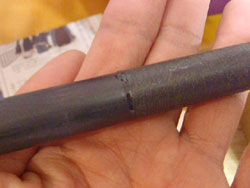 そもそも、このパイプ、内部はストレートなんですが、ブランク側は先に行けば行くほど細くなっていくテーパー形状です。