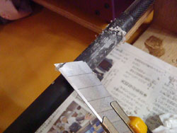 ところが、裏刃を間違えちゃって、カーボン繊維ザックリ(汗)この手の作業はいっそ、スクレーパーつかったほうがいいかもね。