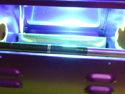 で、UVコーティングの必需品、タイマーですが、これも考えてA&Dの3連タイマーを導入しました。2000円もしたタイマーですが、コレ、立つのでカナリ便利で、さらにコーティング中に5分型のエポキシをフロッグチューニングで使っているときも同時期動画でき、さらに普通のタイマーはタイムアップになると、もとの時間に戻ってしまって、遠くで作業していると、タイマー時間が聞こえない時に、帰ったとき、タイマーをちゃんとせっとしたかどうか分からなくて不安になるんですが、タイムアップ後のタイムも測定しているため、ちゃんと8分経過していることが確認できるので、スーパーオススメツールです。UVコーティングはタイマーが命。イイヤツを買いましょうw