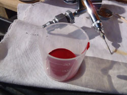 で、エアブラシの練習でやった「線」をうまく描くために、シンナー量と吹きつけ圧を調整します。