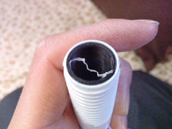 タコロッドでやる限り、接着された内面はびくともしません。つまり、セメダインなんかの硬いエポキシに比べると接着強度は落ちるが、使用上は問題ない強度で、しかも、はみ出たエポキシが剥ぎ取りやすいというわけなんです。