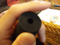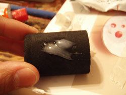 で、続いて成形作業。EVAリーマーにマスキングテープを付け、その上に成形したいコルクをはめ込みます。